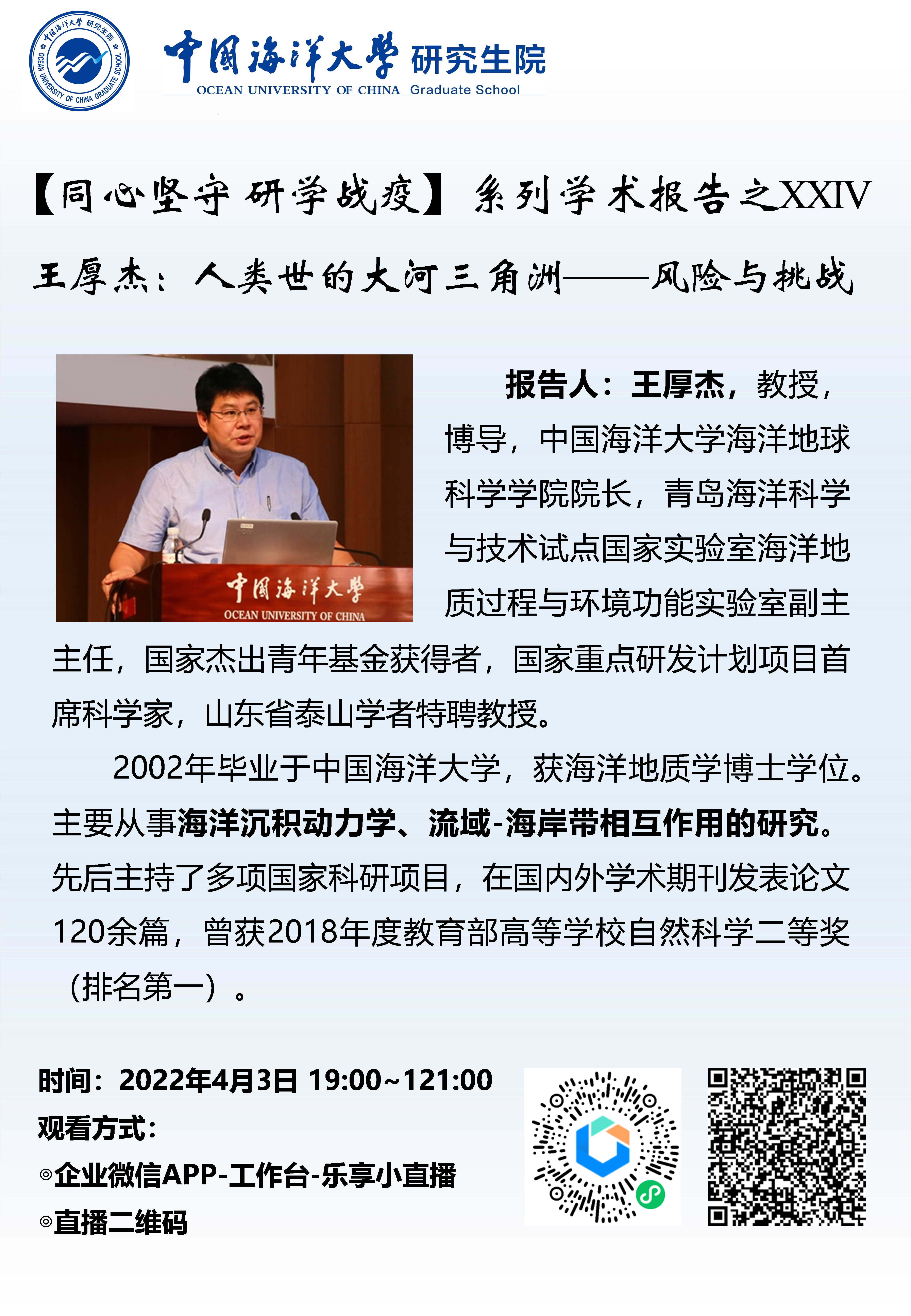 【同心坚守 研学战疫】系列学术报告之XXIV-王厚杰:人类世的大河三角洲——风险与挑战