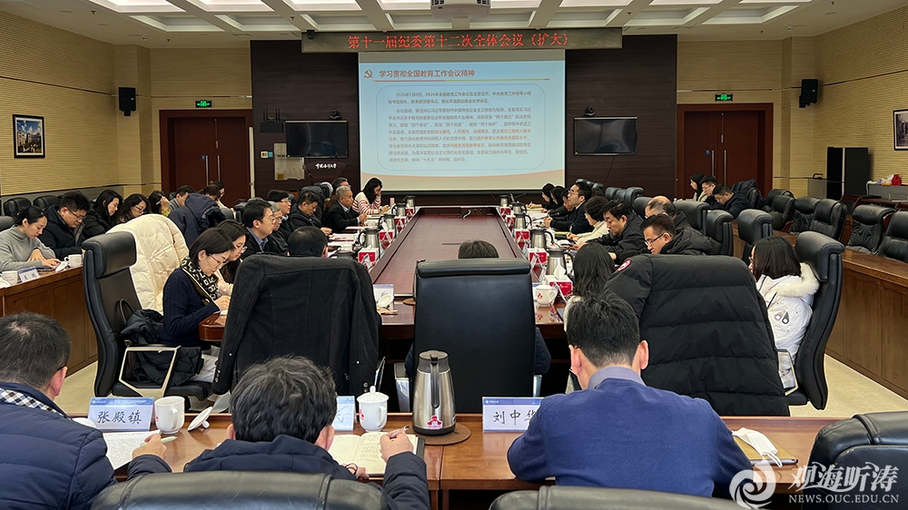 本站讯1月19日,中国海洋大学召开十一届纪委第十二次全体会议(扩大),学习贯彻习近平总书记在二十届中央纪委五次全会上的重要讲话和全会精神以及全国教育工作会议精神,听取过去一年学校纪检监察工作情况汇报,对谋划部署学校2026年纪检监察工作进行交流研讨。学校党委副书记、纪委书记俞黎阳主持会议并讲话。俞黎阳指出,二十届中央纪委五次全会是在“十五五”开局之年,纵深推进全面从严治党的一次重要会议。习近平总书记在全会上的重要讲话,着眼基本实现社会主义现代化关键时期,对以更高标准、更实举措推进全面从严治党,为实现“十五五”时期目标任务提供坚强保障作出战略部署,具有很强的政治性、思想性、指导性,是新时代新征程深入推进全面从严治党的根本遵循。全体纪检监察干部要把学习贯彻习近平总书记在二十届中央纪委五次全会上的重要讲话精神作为当前和今后一个时期的重要政治任务,切实把思想和行动统一到党中央对形势的准确判断、对任务的科学部署上来,紧密联系学校实际,认真落实全面从严治党政治责任,围绕“四个深刻把握”、做到“四个坚定不移”,把党的自我革命贯彻到底。俞黎阳强调,要以更高标准、更实举措推进学校全面从严治党。要做深做实
