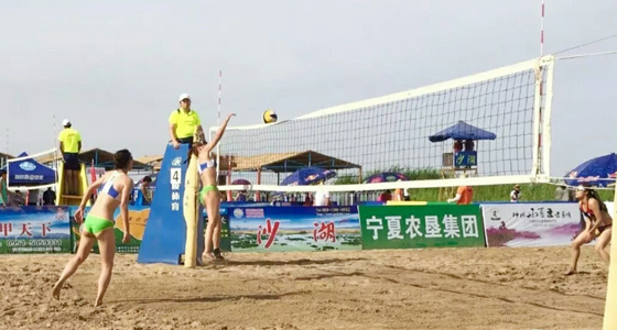 本站讯 6月12日至14日,由中国大学生体育协会主办的2017中国大学生沙滩排球精英赛在宁夏沙湖