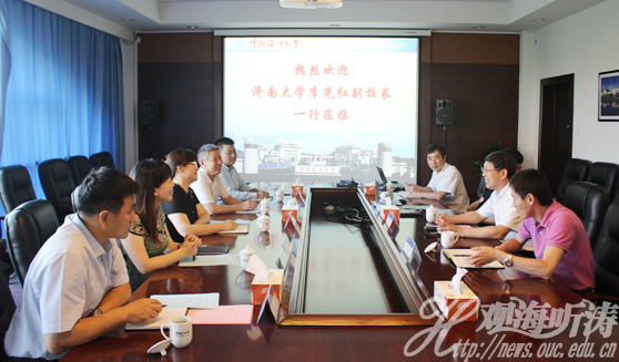 本站讯 6月27日,济南大学副校长李光红一行来到中国海洋大学,就人事和社会科学相关工作进行调研和