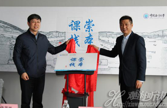 中国海洋大学李巍然副校长(左)与智慧树网李威副总裁(右)为“崇本课栈”揭牌