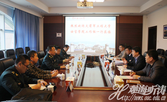 本站讯 4月25日下午,火箭军工程大学士官学院副政委关志昌一行五人来到中国海洋大学,就饮食保障模