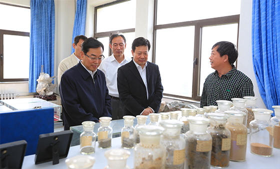 杨东奇部长(前排左)、李群书记(前排中)在鞠传进书记(后排右)的陪同下参观实验室 本站讯 5月