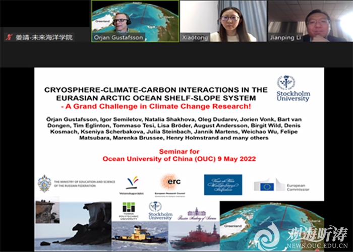 • 本站讯5月9日,瑞典皇家科学院院士、瑞典皇家工程院院士、瑞典斯德哥尔摩大学Örjan Gustafsson教授应邀做客“未来海洋讲坛”,作了题为“Cryosphere-Climate-Carbon Interactions in the Eurasian Arctic Ocean Shelf-Slope System(北冰洋欧亚陆架-陆坡体系冰冻圈-气候-碳相互作用)”的线上学术报告,未来海洋学院院长李建平教授、导师肖晓彤教授联合主持讲座,来自中国海洋大学、厦门...