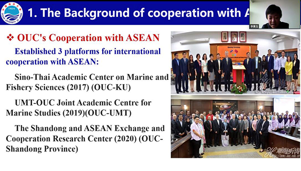 本站讯9月25日,山东省与东盟交流合作研究中心副主任兼中泰海洋和水产中心执行主任李景玉代表中国海洋大学参加了第三届中泰高等教育合作论坛会并作报告。本次论坛会议由江苏大学、中泰高等教育合作联盟主办,贵州大学承办,通过线上线下结合的方式,在贵州中国——东盟教育交流周永久会址二楼松柏山会议厅举行,中泰两国140多所大学的360多名代表参加。 论坛围绕开启后疫情时代合作新模...