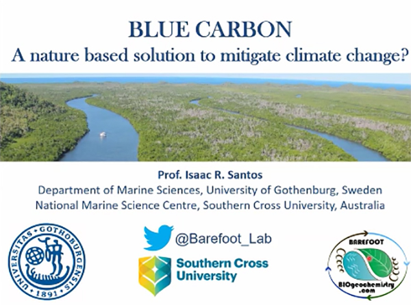 本站讯为促进学科深度交叉融合,帮助学生更好的了解国际科技前沿动态,拓宽学术视野,10月19日下午,未来海洋学院邀请哥德堡大学Isaac R. Santos教授,作了题为“Blue carbon: A nature-based solution to climate change?”的线上学术讲座。院长李建平教授、海洋高等研究院许博超教授共同主持讲座,100余位海内外师生学者聆听了本次讲座。讲座聚焦于当下前沿科学问题——“蓝碳”,通过详...