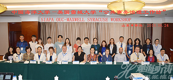 本站讯 6月24日,中国海洋大学—美国雪城大学“公共事务治理工作坊”在青岛蓝海大饭店