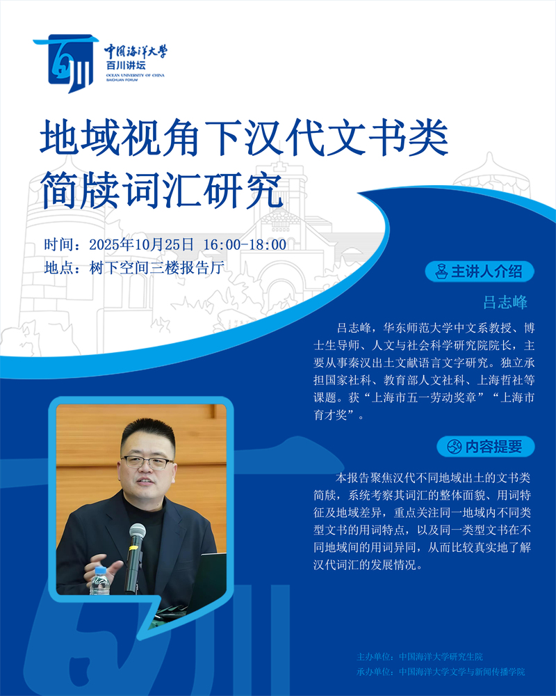 研究生百川讲坛第539讲-吕志峰:地域视角下汉代文书类简牍词汇研究