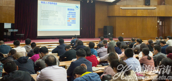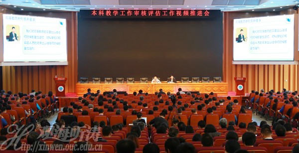 会议在崂山校区海洋科技中心国际报告厅设主会场,同时在崂山校区图书馆第一、二会议室,鱼山校区逸夫馆多功能厅设视频分会场。教学督导团全体成员,全校副处级以上干部,各学院院长、分管教学副院长、各系主任、教学秘书,全体专任教师,全体专职辅导员参加会议。