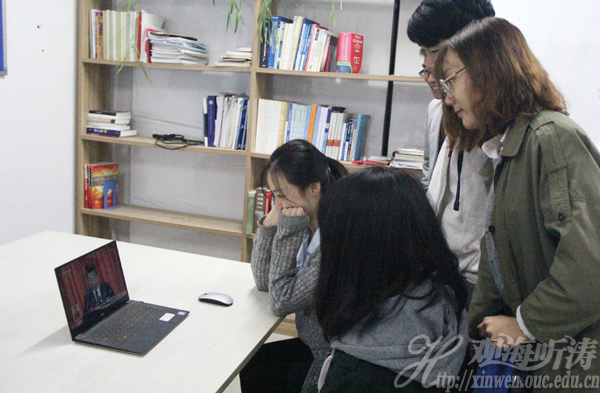 中国海洋大学学生通过网络认真收看党的十九大开幕会实况(祁华 提供)