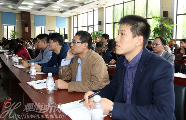中国海洋大学教工党员认真收看党的十九大开幕会实况(金松 摄)