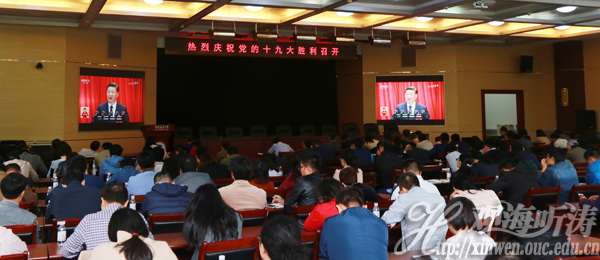 中国海洋大学师生员工热切关注大会盛况。10月18日上午,学校党政领导鞠传进、于志刚、张静、李巍然、闫菊、陈锐,党委常委丁林、吴强明,校党委理论学习中心组其他成员在图书馆第一会议室收看大会开幕会实况,机关党员干部在图书馆第二会议室集中收看大会开幕会实况。全校各级党组织也采取多种形式,认真组织广大党员干部和师生员工收听收看大会开幕会。