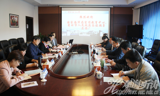 本站讯 10月19日上午,国家海洋局宣传教育中心副主任朱德洲、莆田市委副书记程强一行来到中国海洋大学,就合作办学、传承海洋文化、发展海洋经济等方面进行座谈。学校副校长李巍然在行远楼第四会议室欢迎客人来访。