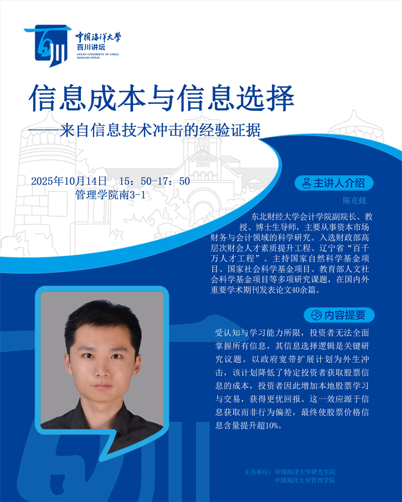 研究生百川讲坛第530讲-陈克兢:信息成本与信息选择--来自信息技术冲击的经验证据
