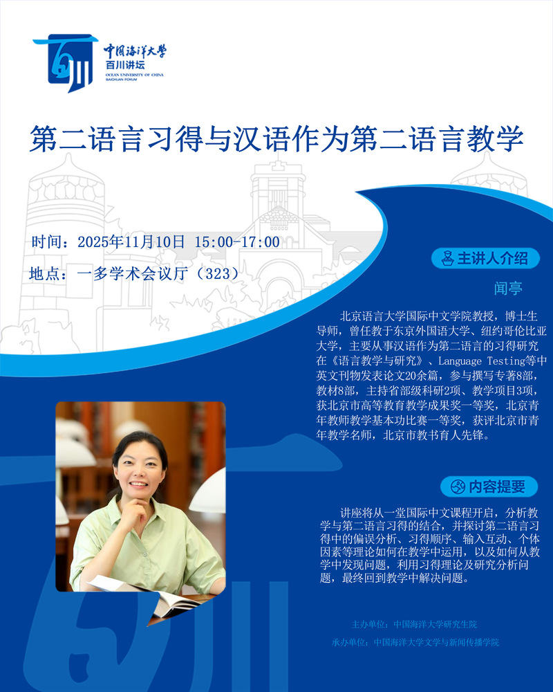 研究生百川讲坛第558讲-闻亭:第二语言习得与汉语作为第二语言教学