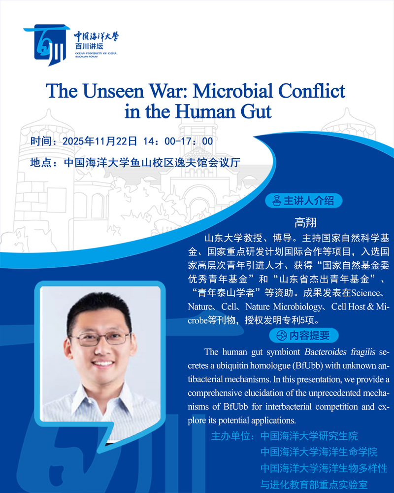 研究生百川讲坛第566讲-高翔:The Unseen War:Microbial Conflict in the Human Gut