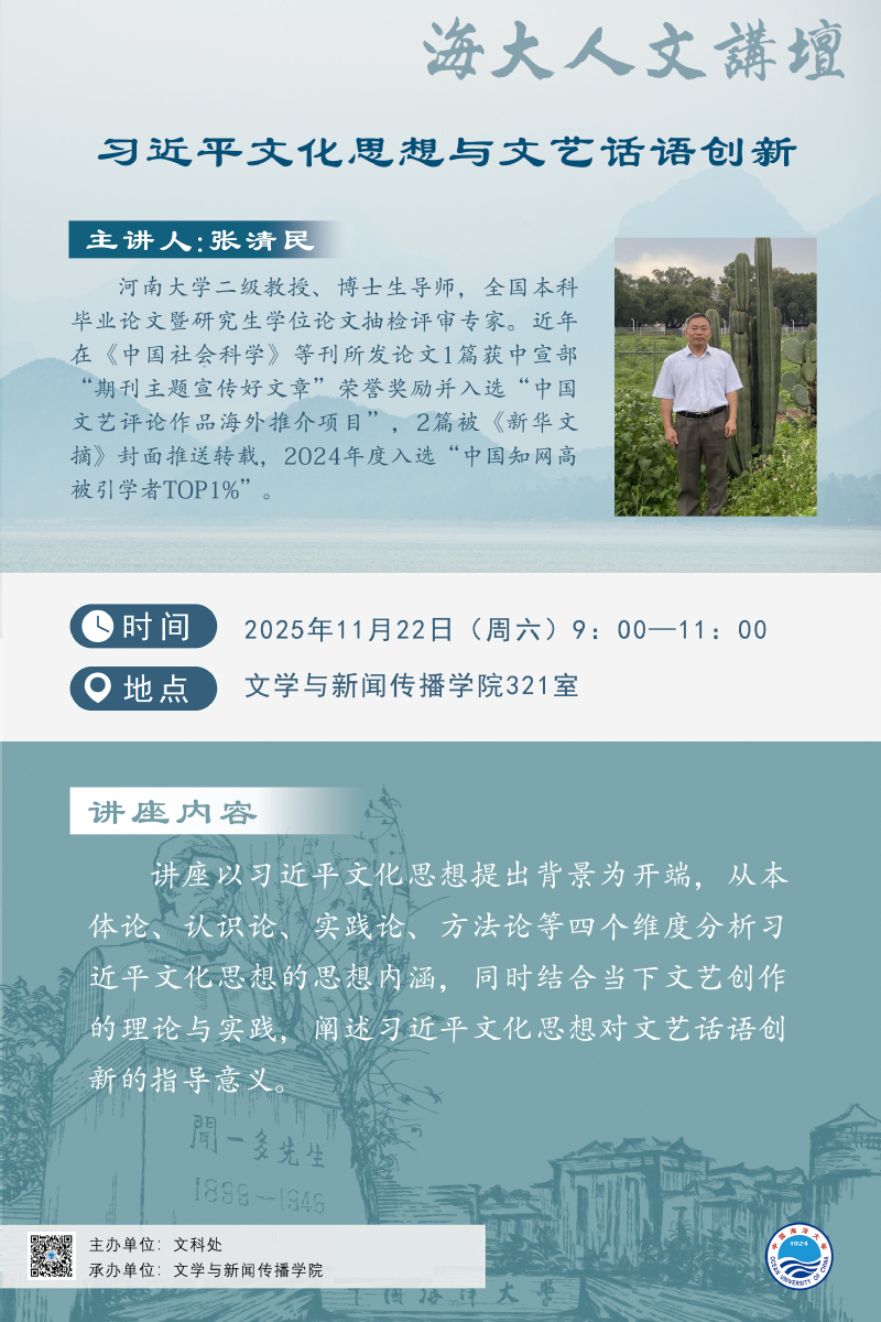 海大人文讲坛2025年第89讲-张清民:习近平文化思想与文艺话语创新