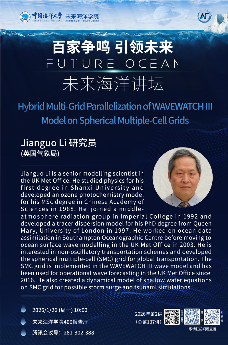 未来海洋讲坛第137讲(2026年第2讲)-Jianguo Li:Hybrid Multi-Grid Parallelization of WAVEWATCH III Model on Spherical Multiple-Cell Grids