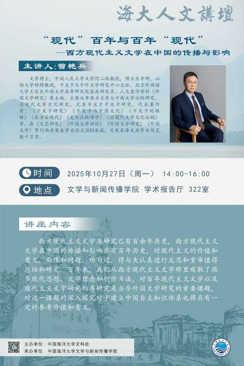 海大人文讲坛2025年第78讲-曾艳兵:“现代”百年与百年“现代”—西方现代主义文学在中国的传播与影响