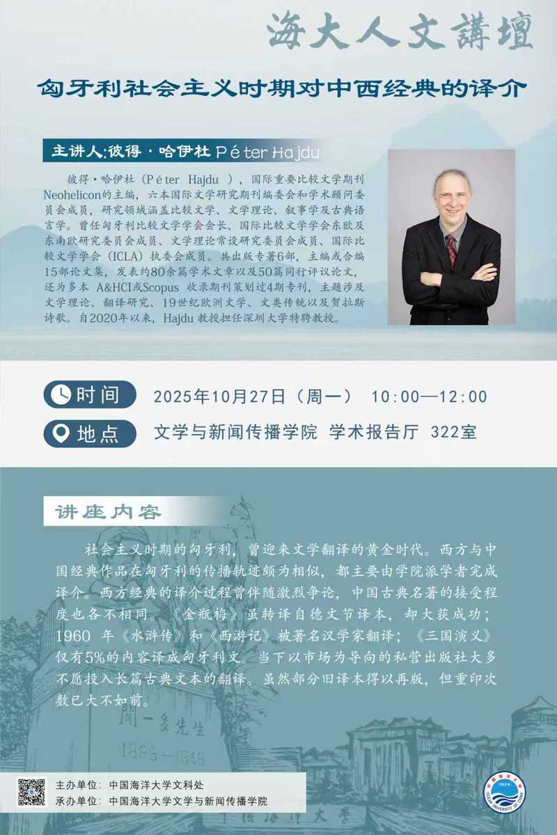 海大人文讲坛2025年第77讲-彼得·哈伊杜:匈牙利社会主义时期对中西经典的译介