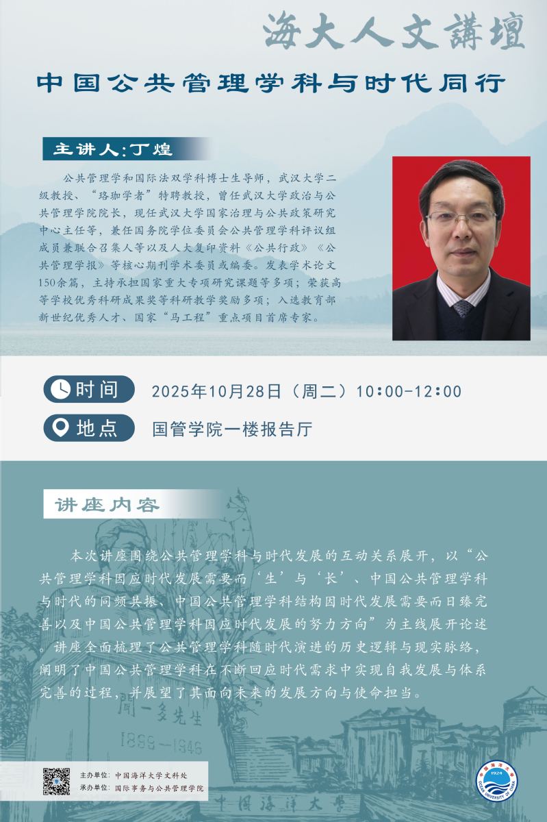海大人文讲坛2025年第80讲-丁煌:中国公共管理学科与时代同行
