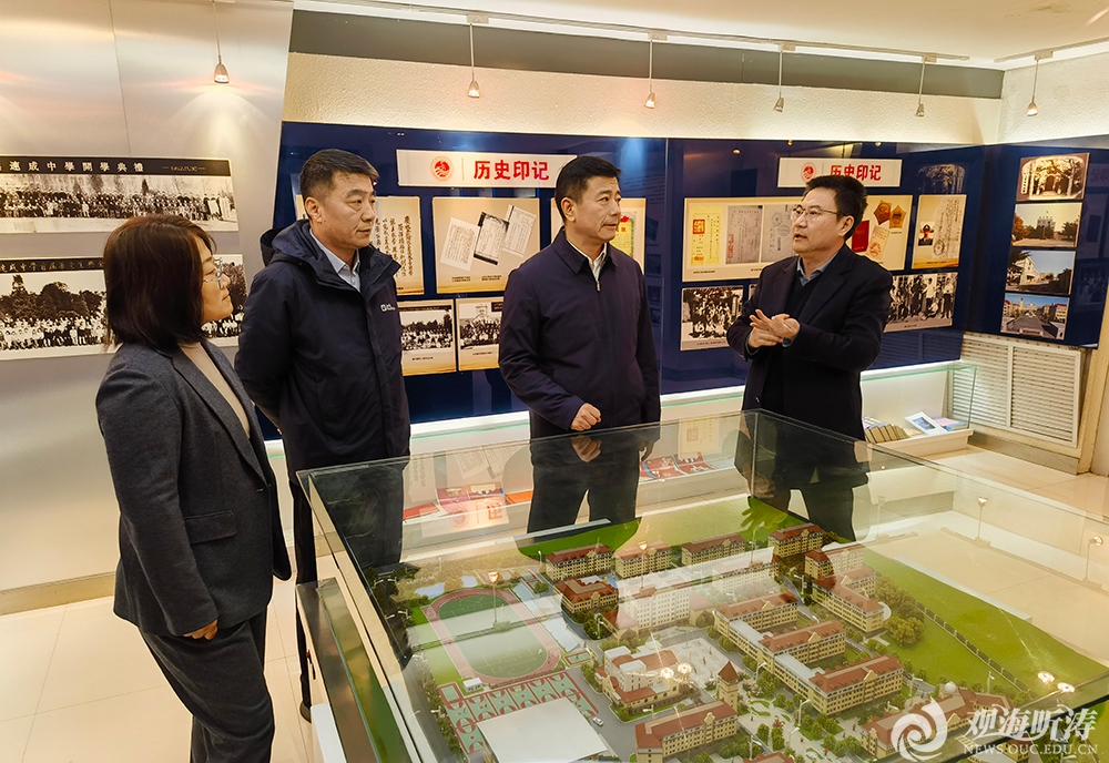 • 本站讯12月19日,学校党委书记李明到青岛第三十九中学(中国海洋大学附属中学)调研。李明实地考察了教室、操场、校史馆等功能场所,深入了解教育教学一线运行情况并召开座谈会,深入了解并听取了办学情况汇报,对附属中学的办学成效给予充分肯定,向广大师生员工表达慰问。李明指出,三十九中办学基础扎实、运行规范、管理精细、育人用心,形成了鲜明的办学特色,取得显著的办学成绩,为青岛市乃至全省基础教育发展作出了积极贡献。办好附属中学,是中国海洋大学深化校地合作、服务区域基础教育发展的重要举措。他强调,要聚焦立德树人根本任务,坚定不移推进德智体美劳“五育并举”,高度重视学生身心健康、品德塑造与综合素质培养。要建立健全家庭、学校、社会协同育人机制,共同营造积极健康、全面发展的育人环境。要增强前瞻意识,科学研判学龄人口变化趋势和学位需求,合理规划办学规模与资源配置。中国海洋大学将充分发挥高校资源优势,推动形成高校与附属中学良性互动、协同育人的新格局,实现“以大学之优,育中学之才”。青岛市教育局副局长项骏,青岛三十九中校长尹逊朋、党委书记张玉华,以及青岛市教育局、中国海洋大学、青岛三十九中相关负责同志参加调研。