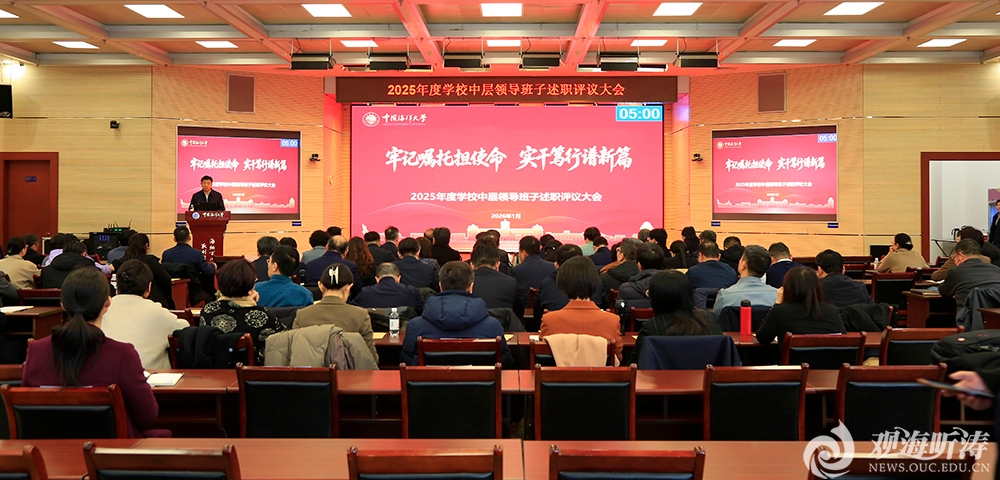 1、深入贯彻落实习近平总书记重要回信精神贯彻落实习近平总书记重要回信精神工作推进会现场 10月24日,学校召开“全面贯彻落实习近平总书记重要回信精神 加快建设特色显著的世界一流大学”工作推进会,重温重要回信内容,总结贯彻落实成效,交流贯彻落实经验,部署深化落实工作。2025年,学校全面贯彻落实习近平总书记视察三亚海洋研究院重要讲话和给全体师生重要回信精神,坚定拥护“两个确立”,坚决做到“两个维护”,加快实施“5135”发展战略,形成了面向未来的新方略、学科建设的新思路、人才培养的新体系、科技创新的新提升、服务国家的新格局。一年来,学校党的领导和党的建设进一步加强,一流学科建设全面加强,拔尖创新人才培养能力不断提升,有组织科研取得新突破,服务国家战略和区域经济社会发展能力显著增强,文化守正创新成果丰硕,开放办学深化拓展,高水平人才队伍建设富有成效,重大载体建设加快推进,一流大学建设迈上新台阶、实现新跃升。2、认真开展深入贯彻中央八项规定精神学习教育深入贯彻中央八项规定精神学习教育总结会议现场 9月11日,中国海洋大学召开深入贯彻中央八项规定精神学习教育总结会议,总结学习教育开展情况,