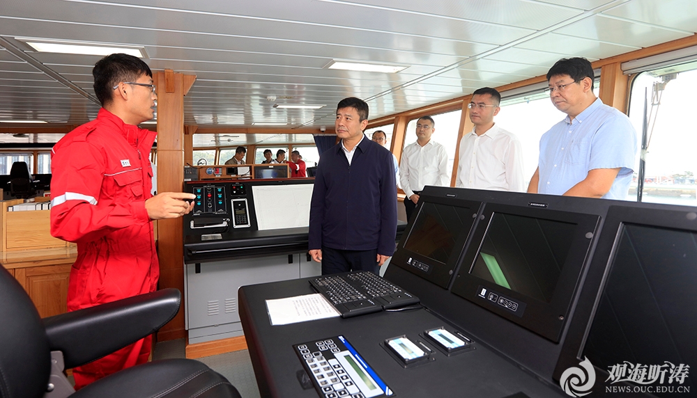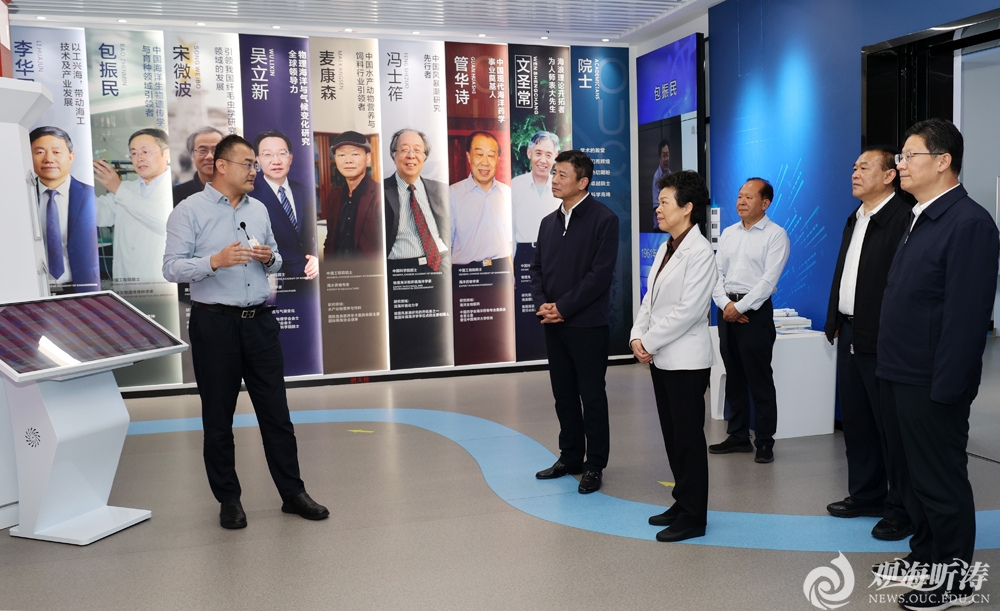 葛慧君主席(左三)考察学校海洋科技成果展厅本站讯10月14日,山东省政协主席、党组书记葛慧君一行来校调研。学校党委书记李明陪同调研。葛慧君一行先后到校史馆、海洋科技展厅和一多楼展馆考察调研,详细了解了学校百年发展历程和办学成就,对学校在人才培养、科技创新等方面取得的成就给予充分肯定,希望学校进一步发挥自身优势,加快建设特色显著的世界一流大学,更好服务国家重大战略,助力山东现代化强省建设,为建设教育强国、海洋强国作出更大贡献。李明对山东省政协长期以来关心支持学校发展表示感谢,并简要汇报了学校事业发展情况。他表示,学校将全面贯彻落实习近平总书记重要回信精神,聚焦国家重大战略需求和山东经济社会发展,立足青岛、扎根山东、面向世界、深耕海洋,不断深化科教融汇、产教融合、校地合作,强化科技创新、成果转化,推进“四链”融合,全面提升服务国家战略和强省建设的能力。调研中,葛慧君和学校省政协委员李广雪、宫庆礼、汪岷亲切交流。山东省政协秘书长秦传滨,青岛市政协主席孟庆斌,学校党委副书记卢光志,学校省政协委员,山东省政协、青岛市政协,学校有关单位负责人等参加调研。文:依丽娜 图:李华昌