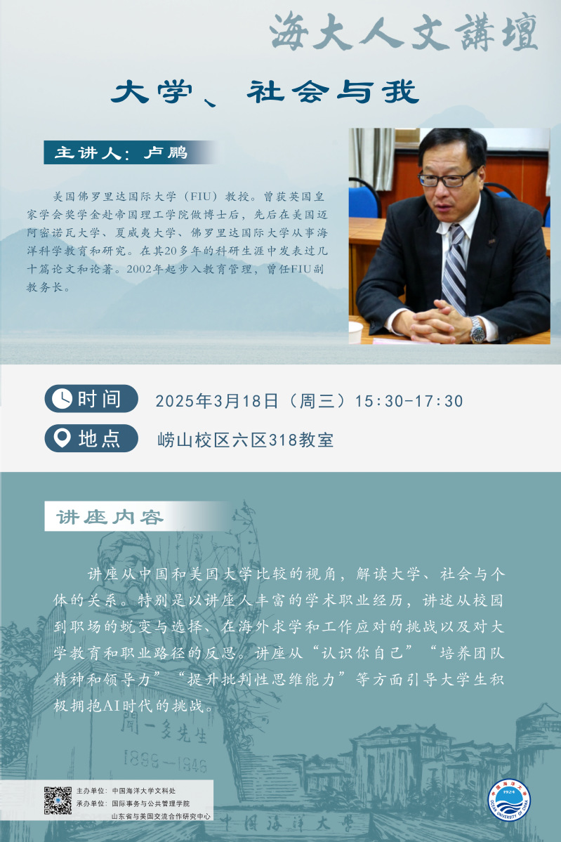 海大人文讲坛2026年第2讲-卢鹏:大学、社会与我