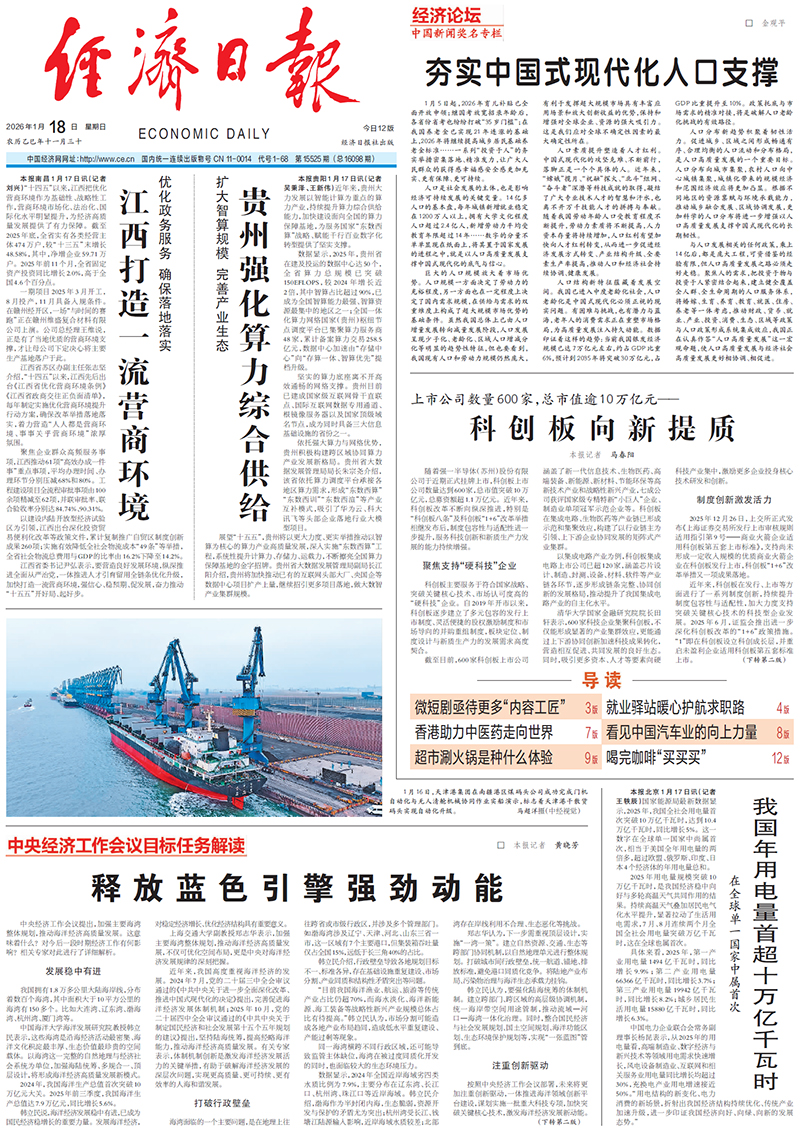 【编者按】日前举行的中央经济工作会议在部署明年经济工作重点任务时提出,加强主要海湾整体规划,推动海洋经济高质量发展。1月18日出版的《经济日报》在头版刊发题为“释放蓝色引擎强劲动能”的专题报道,通过采访中国海洋大学海洋发展研究院教授韩立民等专家,解析了海湾在海洋经济发展中的重要意义,现有规划基础、面临的挑战以及未来的发展构想。现转发全文,以飨读者。2026年1月18日出版的《经济日报》头版 中央经济工作会议提出,加强主要海湾整体规划,推动海洋经济高质量发展。这意味着什么?对今后一段时期经济工作有何影响?相关专家对此进行了详细解析。发展稳中有进 我国拥有1.8万多公里大陆海岸线,分布着数百个海湾,其中面积大于10平方公里的海湾有150多个。比如大连湾、辽东湾、渤海湾、杭州湾、厦门湾等。 中国海洋大学海洋发展研究院教授韩立民表示,这些海湾是沿海经济活动最密集、海洋文化积淀最丰厚、生态价值最珍贵的空间载体。以海湾这一完整的自然地理与经济社会系统为单位,加强海陆统筹、多规合一、顶层设计,将形成海洋经济高质量发展新模式。 2024年,我国海洋生产总值首次突破10万亿元大关。2025年前三