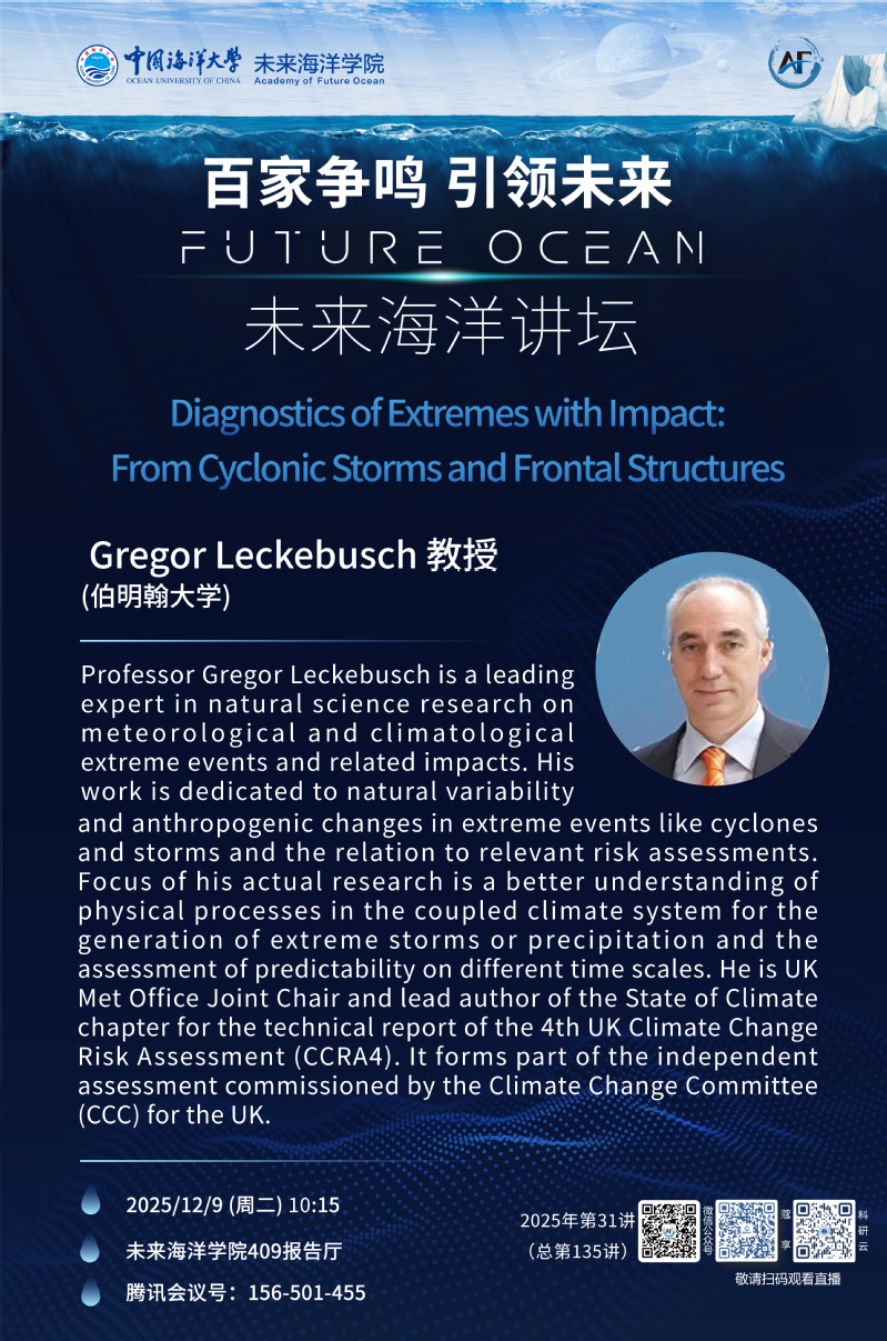 未来海洋讲坛第135讲(2025年第31讲)-Gregor Leckebusch:Diagnostics of Extremes with Impact:From Cyclonic Storms and Frontal Structures